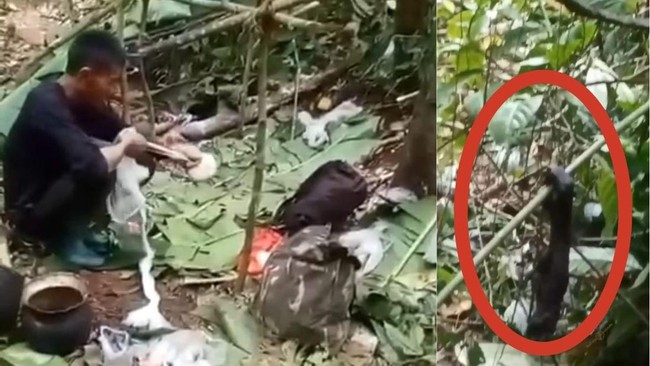 Sebuah video viral di media sosial menunjukkan seseorang diduga menyiksa orang utan untuk dikonsumsi. Terlihat sebuah potongan tangan kanan primata itu tergantung menggenggam ranting pohon.