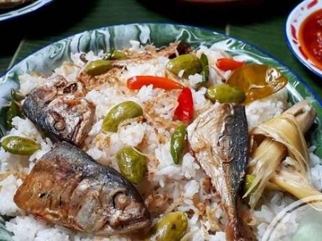 - Setelah nasi matang, campurkan dengan daun kemangi, suwiran ikan asin, dan air jeruk nipis.
