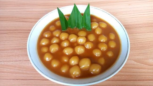 - Untuk kuah, rebus gula merah, gula pasir, dan air hingga larut, kemudian saring. Didihkan santan bersama daun pandan, garam, dan air rebusan gula merah, aduk terus agar santan tidak pecah.