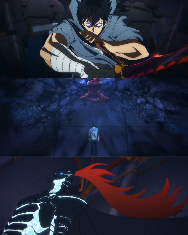 Akhir episode, Igris dan kesatria bayangan berbaju zirah yang tadinya melawan Sung Jinwoo habis-habisan, kini malah bersujud tunduk terhadapnya. Keren banget!