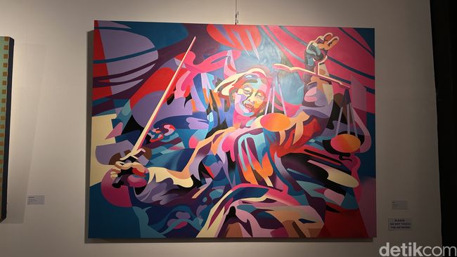 Main-main ke GBK Unfolds di Artotel Gelora Senayan, pasti kamu bakal temukan lukisan vibrant dengan warna-warna terang menyala. Dipadukan gambar seorang wanita membawa sebuah timbangan dan sebuah pedang dengan mata tertutup.