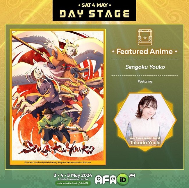 Pencinta Sengoku Youko yuk merapat! Ada pengisi suara karakter anime atau yang biasa disebut seiyu Sengoku Youko di Anime Festival Asia Indonesia (AFA ID) yang diselenggarakan pada Sabtu (4/5) di JCC Senayan, Jakarta.