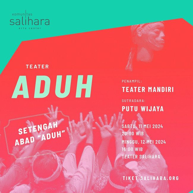 Merayakan setengah abad 'Aduh', Komunitas Salihara gelar pertunjukan lakon Aduh sepanjang akhir pekan ini. Dimulai Sabtu (11/5) pukul 20.00 WIB dan esok harinya Minggu (12/5) pukul 16.00 di Teater Salihara, kawasan Pasar Minggu, Jakarta Selatan.
