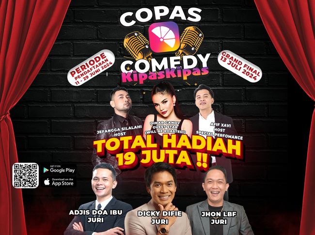 "Kami sangat bangga dapat mendukung acara COPAS (Comedy KipasKipas) ini. Kompetisi ini bukan hanya tentang hiburan, tetapi juga tentang menggali kreativitas dan memberikan panggung bagi para komika berbakat untuk menampilkan bakat mereka. Kami berharap acara ini dapat menjadi inspirasi bagi banyak orang dan mengembangkan industri komedi di Indonesia," ujar Ahmad dalam keterangan tertulis, Sabtu (15/6/2024).
