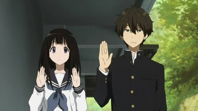 Kedua karakter itu berasal dari anime Hyouka yang diproduksi Kyoto Animation. Anime bergenre drama dan misteri ini juga pernah dicibir karena tergolong anime ngantuk yang ceritanya flat saja.
