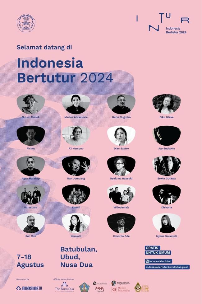 Gelaran akbar Indonesia Bertutur 2024 resmi dibuka hari ini. Digelar mulai 7 sampai 18 Agustus di Bali, festival seni dan budaya terbesar di Tanah Air bakal dimeriahkan sekitar 900 pelaku seni dan budaya.
