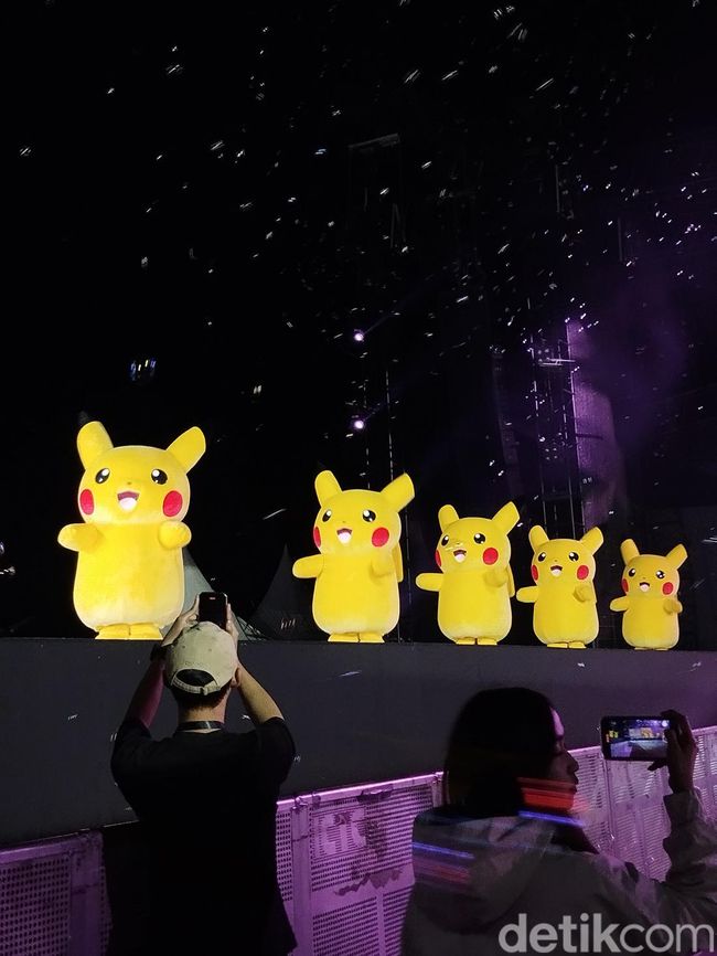 Gak disangka, Pikachu juga tampak jingkrak-jingkrak selama 20 menit. Selanjutnya pukul 20.10 sampai 20.30 WIB, giliran sajian drone show yang spektakuler.
