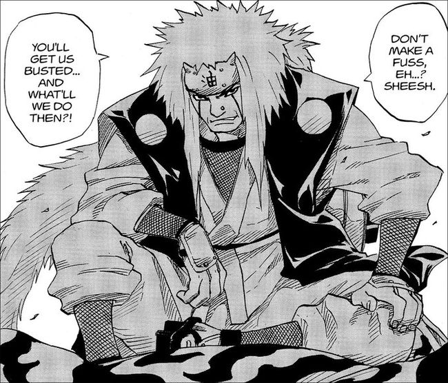 Jiraiya jadi karakter Petapa Tua nakal dan genit, sekaligus guru bagi Naruto, Sasuke, dan Sakura. Dalam semesta manga dan anime Naruto, Jiraiya diceritakan mati terbunuh di tangan muridnya sendiri.