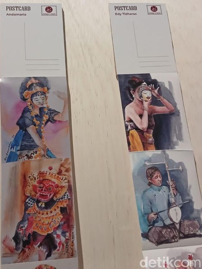 "Unity in Diversity menjadi pesan utama kami melalui kartu pos ini. Setiap gambar adalah jejak yang mengingatkan kita pada kearifan lokal yang menyatukan Indonesia. Salah satunya karya dari Pak Edy Tidharso, bayangkan orang sesibuk Pak Edy masih menyempatkan diri untuk menggambar 60 post card, jadi dia menggambar kebanyakan tari topeng, beberapa juga tarian yang tanpa topeng, bertukar dengan temen teman yang lain," tambahnya.