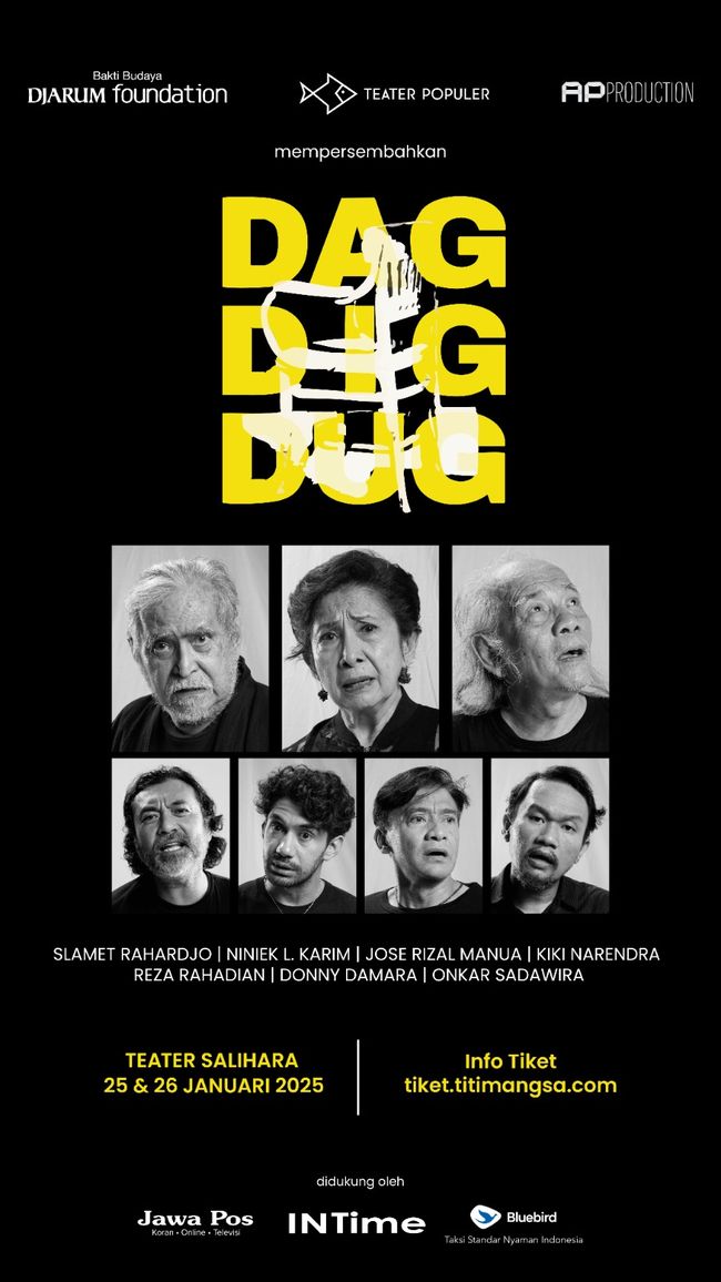 Mengawali 2025, Teater Populer yang berdiri sejak 1968 bakal menggelar pertunjukan DAG DIG DUG. Lakon yang ditulis Putu Wijaya bakal digelar pada 25-26 Januari 2025 pukul 19.00 WIB di Komunitas Salihara, Jakarta Selatan.
