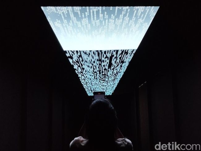 Dari pintu masuk, nikmatilah visualisasi data yang ada di 'langit'. Menengadahlah ke atas layaknya jutaan data yang berseliweran di atas, masuk ke ruang kedua kamu akan menelusuri ruang di antara angka 1 dan 0, dan bergegaslah ke 9 meja berisikan data yang bakal membuatmu terperangah.