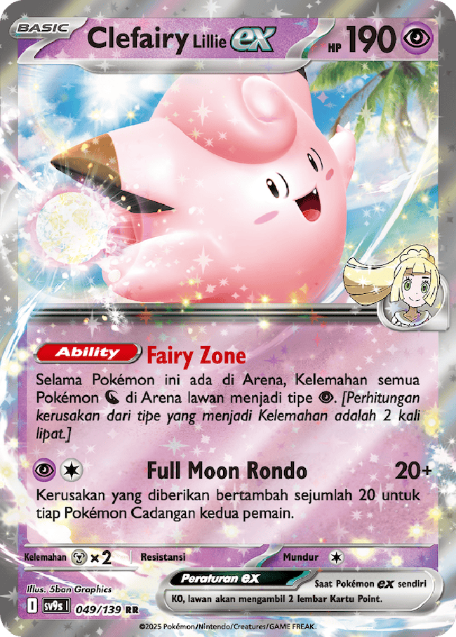 Kartu ini juga jadi faktor penentu kemenangan dalam sebuah permainan. Tapi yang lebih spesial lagi dalam Ikatan Takdir, lanjut Fachrul adalah kehadiran Clefairy Lillie ex (baca: Pokémon Clefairy milik Pelatih Lilie).