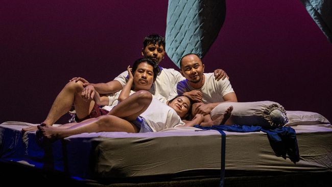 Lakon Bertiga tapi Berempat yang dipentasin sama Teater Gardanalla emang cuma berpusat dengan artistik di atas ranjang dan kursi. Hadir dengan gaya realisme, sutradara dan penulis naskah Joned Suryatmoko cerita sebenarnya ide pentaskan ulang bermula dari data sejarah di medsos yang diolah jadi sesuatu hal menyimpang.