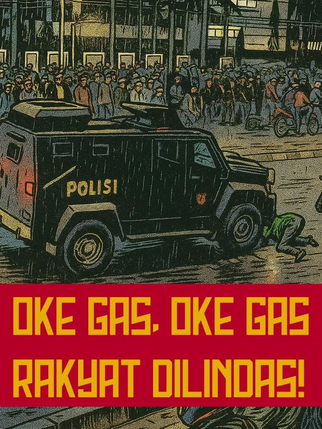 Gambar seniman asal Yogyakarta itu juga bertuliskan, "Oke Gas. Oke Gas. Rakyat Dilindas!".