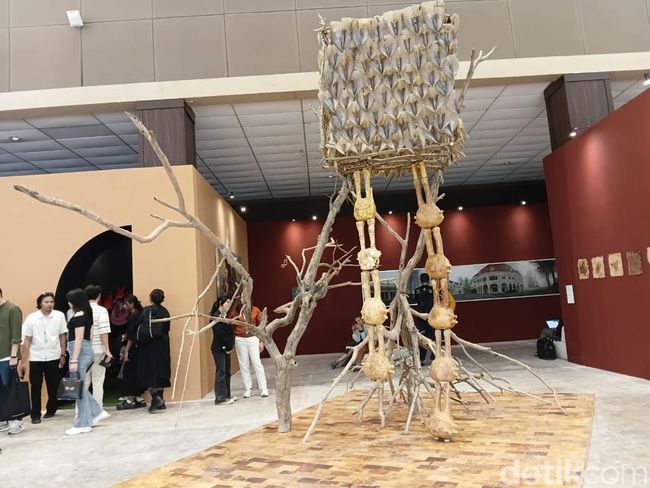 "Karya mereka berangkat dari riset, pengamatan, pemikiran yang sangat khas dipengaruhi Indonesia. Misalnya kapal pinisi Iwan Yusuf, Mariam itu sebenarnya bangunan kolonial yang dia reka ulang lagi dan dibikin semacam kabut di situ untuk ngomongin tentang ingatan kolonial. Mungkin kita semua yang juga kabur tapi terus menghantui gitu," ungkap Agung saat ditemui di Art Jakarta 2025, JIExpo Kemayoran, pada Jumat malam (4/10).