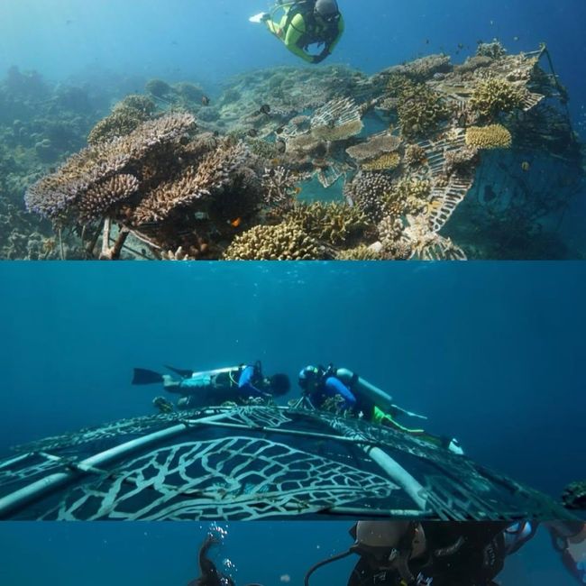 Karya seni instalasi ARTificial Reef yang berjudul Domus Longus, pertama kali ditenggelamkan sejak 5 September 2015. Empat tahun berikutnya sudah tertutup terumbu.