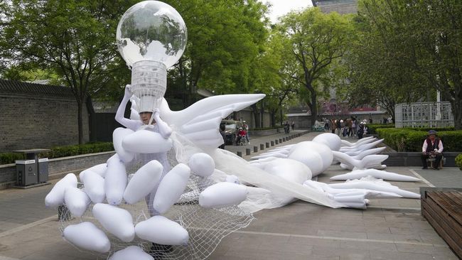 Beijing - Dalam memperingati Hari Bumi, seniman di China Kong Ning menampilkan karya terbarunya. Nih lihat foto-fotonya.