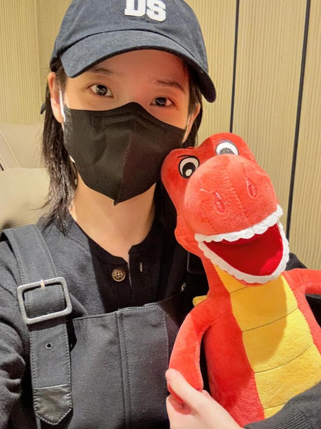 IU berpose bareng sebuah boneka naga. Sepertinya jadi shout out buat fans Jakarta yang energinya nggak abis-abis kayak naga. (Foto: dok. Instagram @dlwlrma)