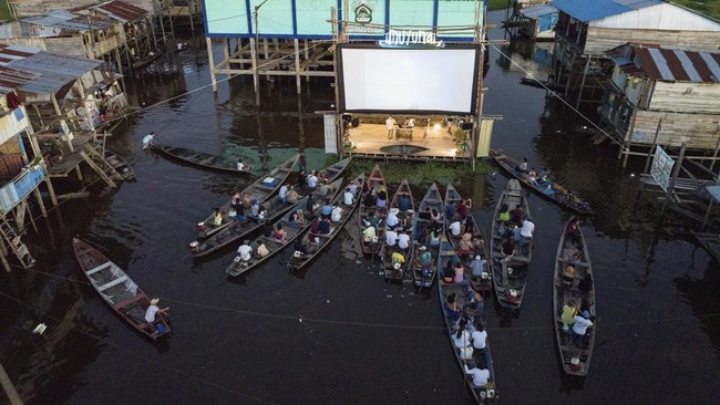 Peru - Festival film digelar di sebuah lingkungan miskin, Amazon, Peru. Banyak orang yang menghadiri acara tersebut belum pernah menonton film di layar lebar.