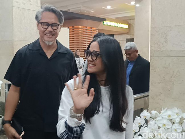 Nirina Zubir bersama dengan suami terlihat tiba di kantor Kementerian ATR/PBN sekitar pukul 10.00 WIB, Kebayoran Baru, Jakarta Selatan hari ini. Foto: (Rizky Adha Mahendra/detikcom)