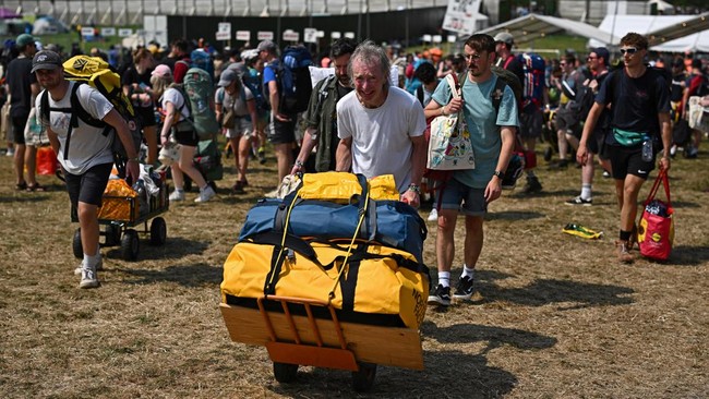 Inggris - Ribuan orang mulai berdatangan ke Worthy Farm di barat daya Inggris untuk festival musik Glastonbury. Ini merupakan festival terbesar paling bergengsi di dunia.