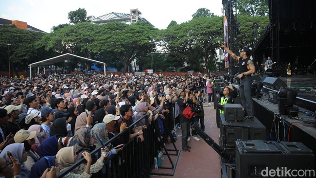 Keseruan konser West Java Festival (WJF) 2024 belum usai. Setelah dibuka melalui penampilan energik oleh band Kuburan, kini giliran Nidji yang menghentak panggung WJF di Lapangan Saparua, Kota Bandung, Minggu (25/8/2024).
