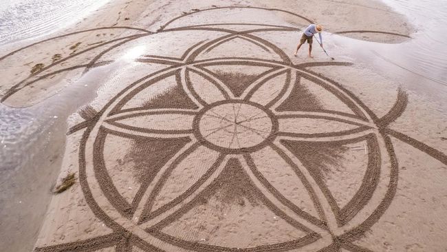 Kroasia - Festival Seni Pasir ke-4 di Kroasia memukau dengan karya seni pasir di muara sungai Neretva. Keindahan dan detailnya memukau dalam pemandangan dari drone.