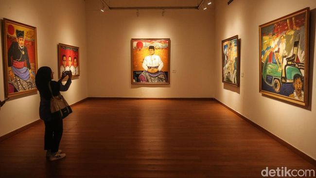 Jakarta - Pameran Jejak Perlawanan "Sang Presiden 2001" karya Hardi digelar di Galeri Nasional, Jakarta, Kamis (9/1/2025). Yuk lihat.