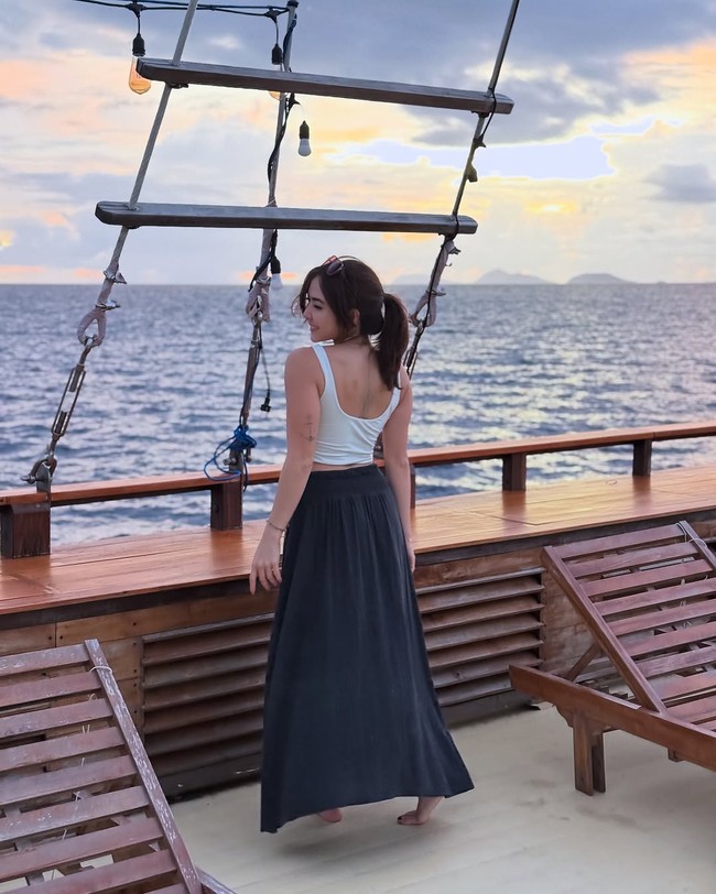 Jakarta - Gisel menikmati alam Raja Ampat dengan cara yang sempurna. Dia berlayar dengan kapal ketika senja terlihat di langit.