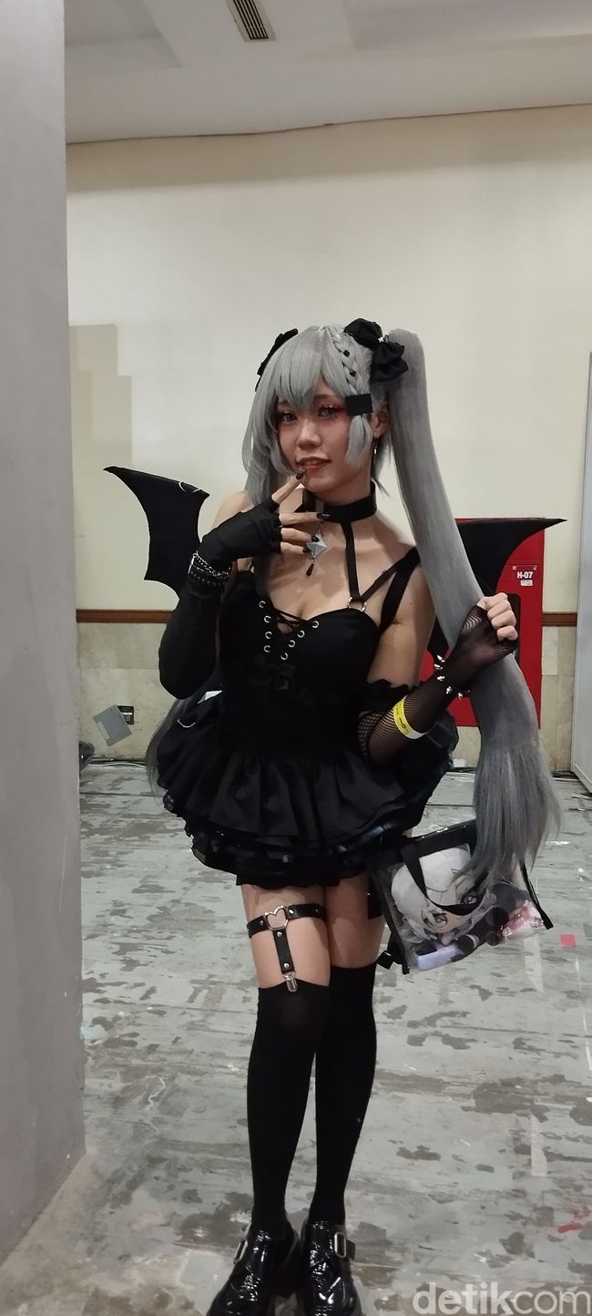 Di AFA ID, cosplayer yang bernama Miyuki Yoruba meranin karakter seorang VTuber Zeta. Dia ngaku beli outfit bajunya dan sengaja bikin wig sesuai dengan kepribadian idol favoritnya. Foto: Tia Agnes/ detikcom
