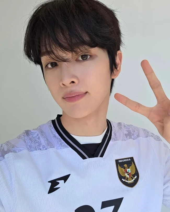Jakarta - Media sosial dibuat heboh oleh Sungchan RIIZE. Artis SM Entertainment itu muncul menggunakan jersey Timnas Indonesia.