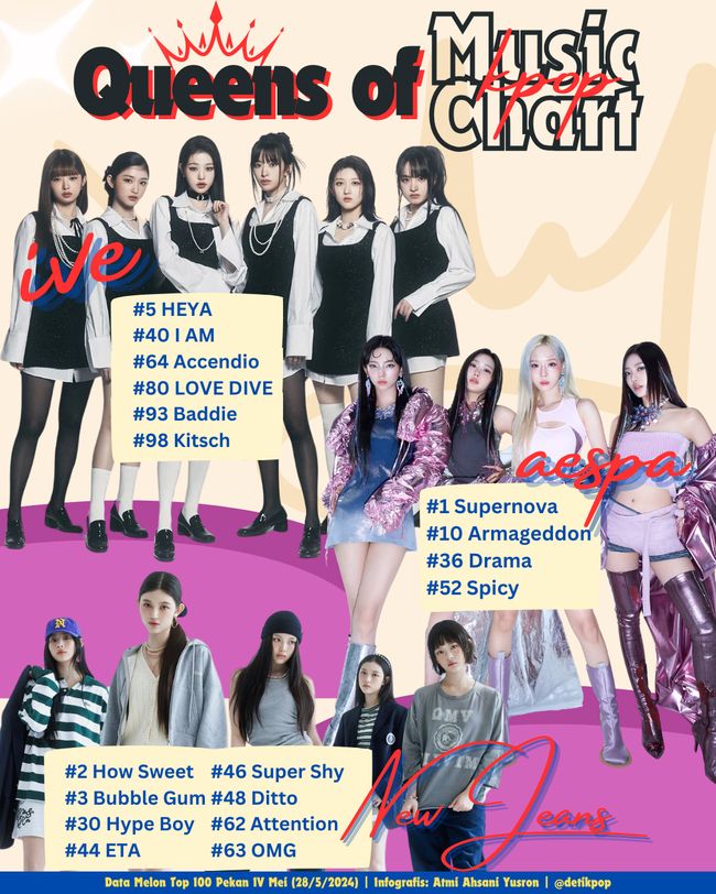 Jakarta - Siapa girlband K-Pop yang punya lagu paling banyak di chart Melon Top 100 saat ini? Simak selengkapnya dalam infografis di atas!
