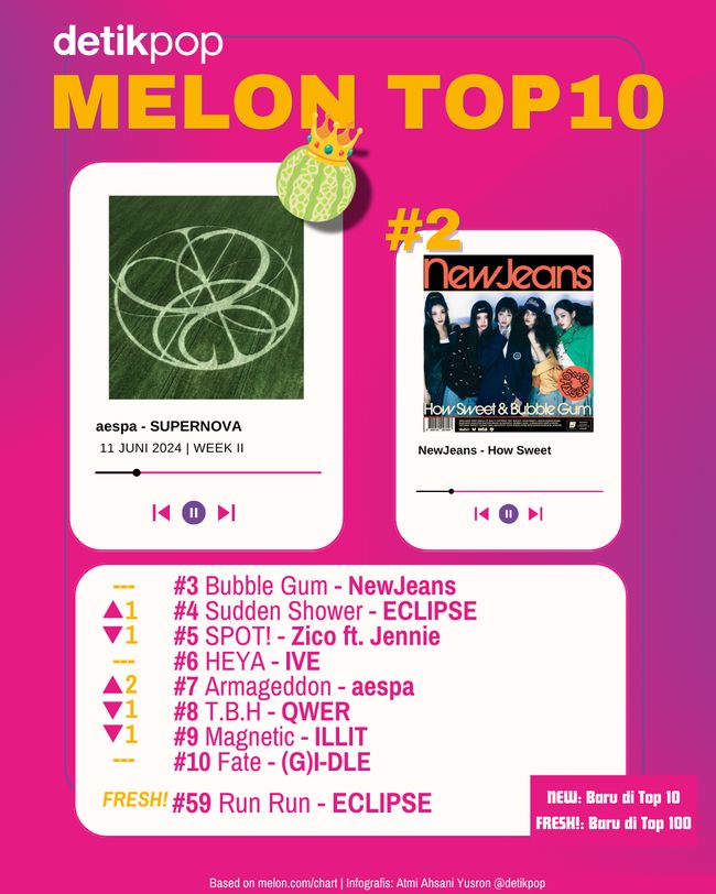 100 lagu terbaik di chart Melon Top 100 pekan ini bisa kamu dengarkan di playlist detikpop di bawah ini: