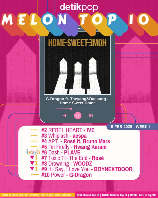 Jakarta - PLAVE masuk 10 besar chart Melon lewat lagu Dash dari album baru Caligo Pt. 1. Simak selengkapnya dalam infografis di atas.