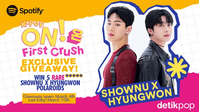 MONBEBE yorobun yang dicintai MONSTA X! detikpop dan detikcom berkolaborasi dengan Spotify buat merayakan perilisan Spotify K-Pop ON! Single Shownu X Hyungwon dari MONSTA X dengan bagi-bagi polaroid eksklusif buat kamu nih. Nggak cuma eksklusif, polaroid ini juga dijamin rare alias langka!