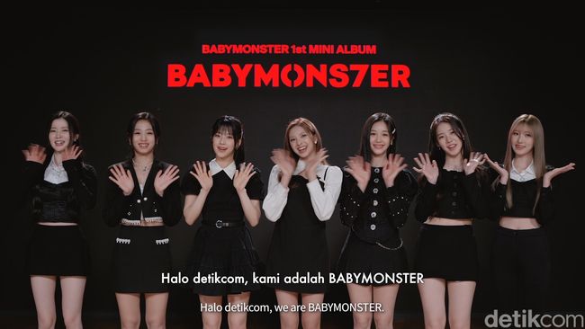 Para member BABYMONSTER tampil dalam busana bernuansa hitam-putih. Semua terlihat ceria dan memberikan senyum terbaik mereka saat bilang, "Halo detikcom! Kami BABYMONSTER!"