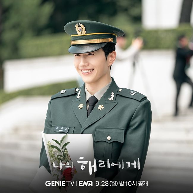 Bisa dibilang karakter Kang Joo Yeon ini polos banget deh. Dalam foto-foto yang dirilis oleh ENA, kesan ramah dan cowok baik-baik juga diperlihatkan oleh Kang Hoon. Ada foto ketika dia berseragam militer, ada juga foto dengan setelan jas biasa.