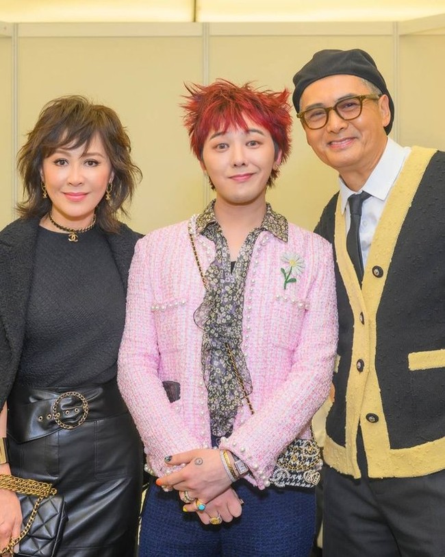 Di salah satu foto, G-Dragon diapit oleh Carina Lau dan Chow Yun Fat. Bintang K-Pop itu menampilkan ekspresi witty khasnya saat berdampingan dengan para pesohor Hong Kong.