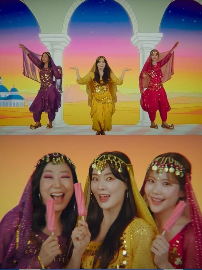 Mereka tampil dengan busana ala Arab, menari gak serius dan bercanda diiringi musik upbeat. Para aktris tampil dengan busana berwarna cerah mencolok seperti ungu, kuning, dan merah. Mereka juga pakai sepatu dengan ujung lancip bengkok ke atas berwarna keemasan.