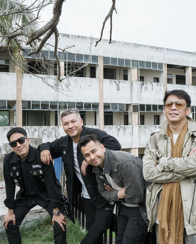 Momen libur akhir pekan dimanfaatkan presenter Raffi Ahmad dengan touring bersama Gading Marten, Desta, dan Ariel NOAH yang menamakan geng mereka dengan The Dudas Minus One.