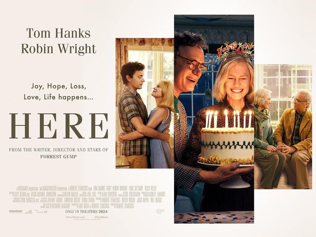 HERE merupakan film drama keluarga yang diambil berdasarkan novel grafis karya Richard McGuire. Film ini menghadirkan kisah lintas generasi, mengisahkan pengalaman manusia mulai dari cinta, kehilangan, tawa, dan kehidupan.