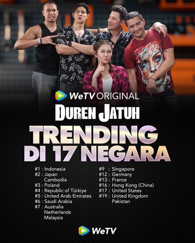 WeTV Original Duren Jatuh yang dibintangi oleh Nino Fernandez dan Zoe Abbas meraih kesuksesan nih. Pencapaian luar biasa yang diraih adalah masuk trending di 17 negara dan telah ditonton sebanyak 10 juta kali.