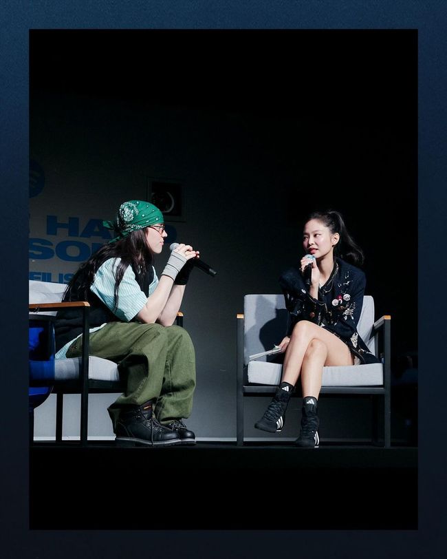 Lalu, yang uniknya Jennie saat itu berbincang dengan musisi muda bintang dunia, Billie Eilish. Saat itu mereka membahas album terbaru Eilish yang bertajuk Hit Me Hard and Soft.