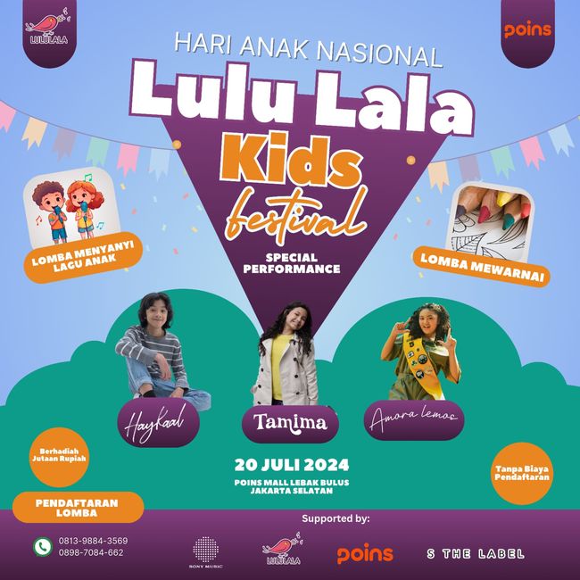 Dalam rangka Hari Anak Nasional yang jatuh pada 23 Juli, Lululala Indonesia, sub-label dari Sony Music Entertainment Indonesia, akan menggelar LuluLala Kids Festival.
