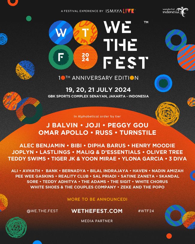 Tapi gak cuma itu, We The Fest hari ini juga akan diramaikan oleh The Sigit, Jordan Susanto, White Shoes & The Couples Company, Dipha Barus dan masih banyak lagi.