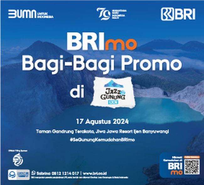 Buat kamu yang belum punya agenda khusus di momen 17-an, yuk saksikan langsung nikmatnya lantunan musik dan pemandangan alam Banyuwangi di Jazz Gunung Ijen. Kamu bisa manfaatkan promo dari PT Bank Rakyat Indonesia (Persero) yang menghadirkan potongan harga sebesar 30% dengan maksimal Rp 200.000 untuk pembelian tiket acara ini. Promo berlaku untuk pembelian tiket menggunakan BRImo dan Kartu Debit BRI hingga periode 16 Agustus 2024.