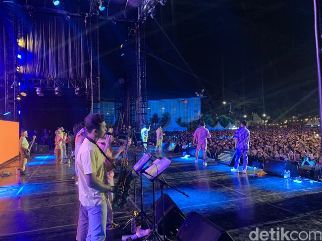 Malam masih panjang buat pengunjung West Java Festival 2024. GOR Saparua di Bandung, semakin ramai dan meriah karena penampilan Project Pop.