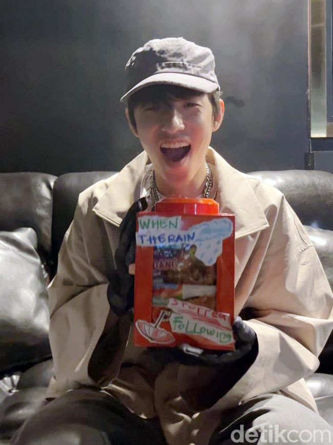 Kejutan kedua adalah sekaleng mie instan. Di wawancara detikpop bersama Eaj saat perilisan Friendly Fire bulan Mei lalu, pria bernama lengkap Park Jae Hyung itu bilang dia suka banget brand mie instan dari Indonesia. Makanya detikpop membawakan kaleng ala warmindo ke lokasi konser.