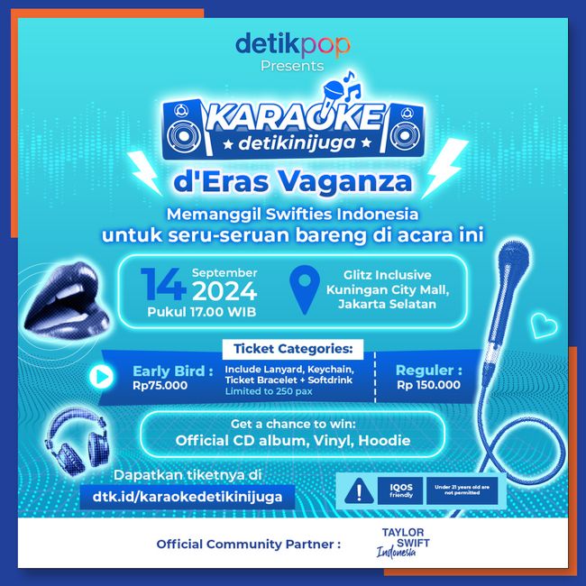 Nah kali ini Taylor Swift Indonesia bersama detikpop bakal mengadakan d'Eras Vaganza untuk Swifties kumpul-kumpul san karaokean bareng.