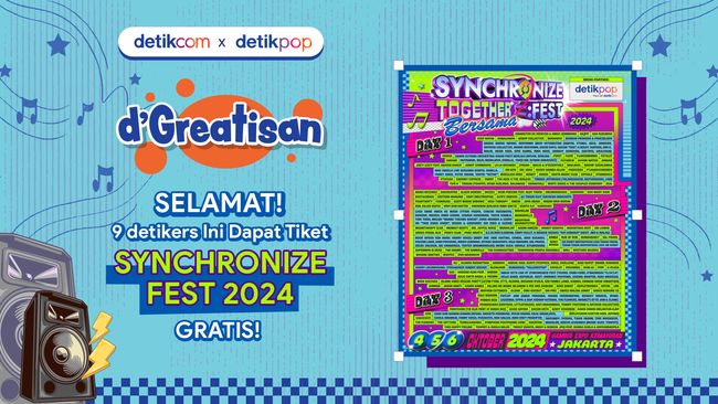Guys, tahu kan kalau detikpop bikin kuis berhadiah tiket gratis Synchronize Fest 2024? Nah, ini dia pengumuman pemenangnya!